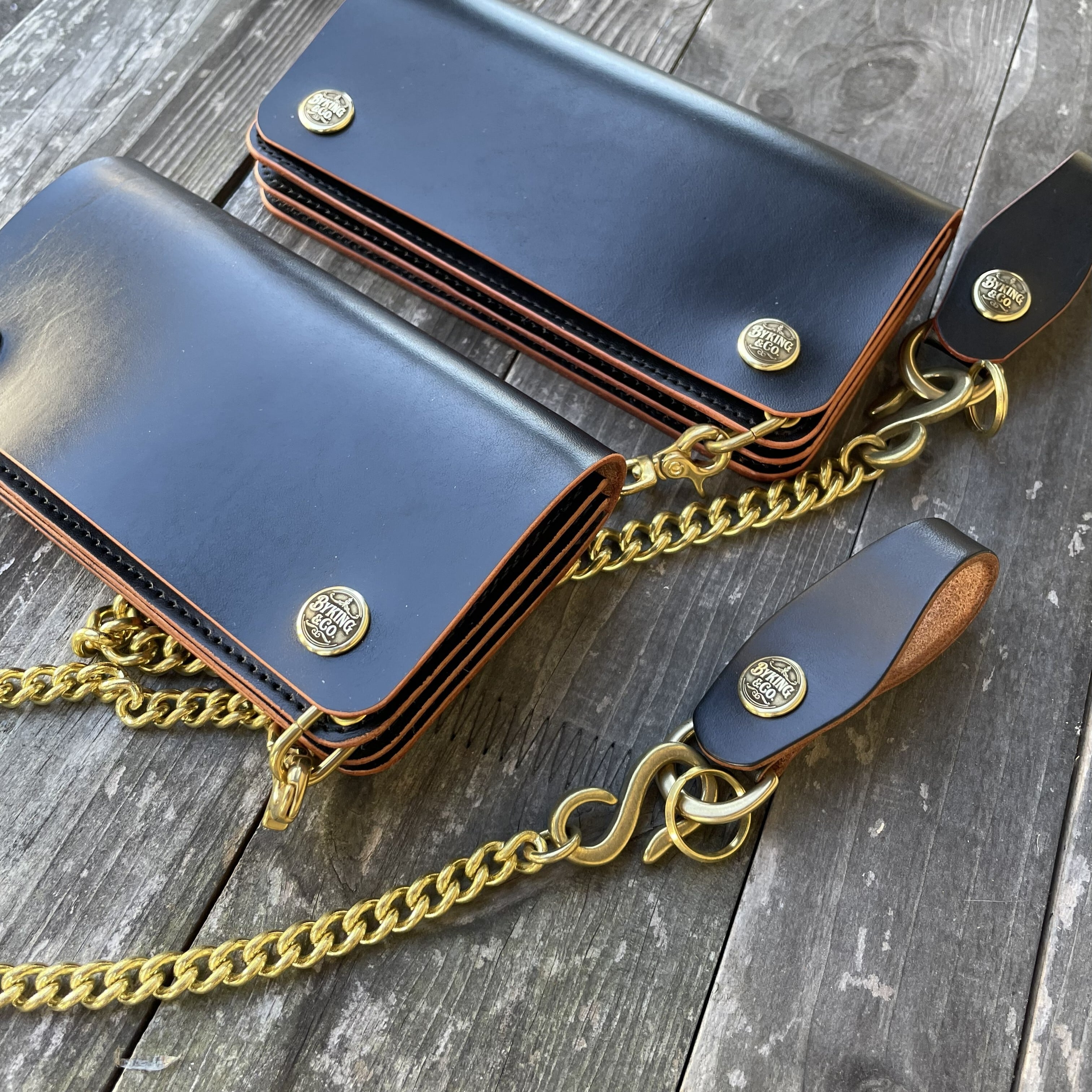 茶芯を使ったTrackerWallet。オリジナルデザインのボタンも真鍮で拘り、茶芯の経年変化・真鍮ボタンの経年劣化をそれぞれ愉しめます。